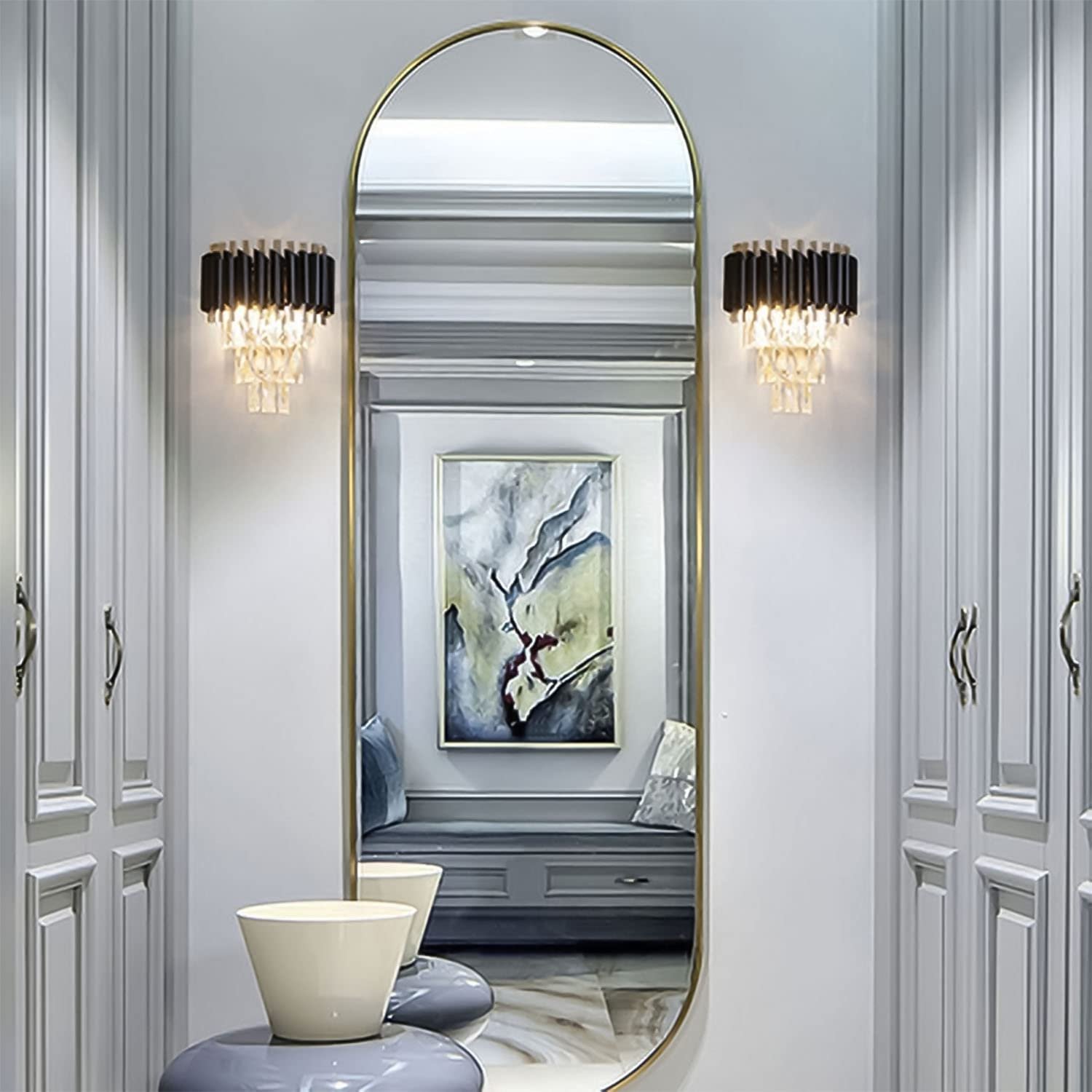 • ➤ [Bedroom Wall Light Size]: The Black Mambe crystal wall sconce is made of high-quality aluminium and crystal. Fixture Width: 26 cm Fixture Height: 32 cm, Length 18cm from the wall