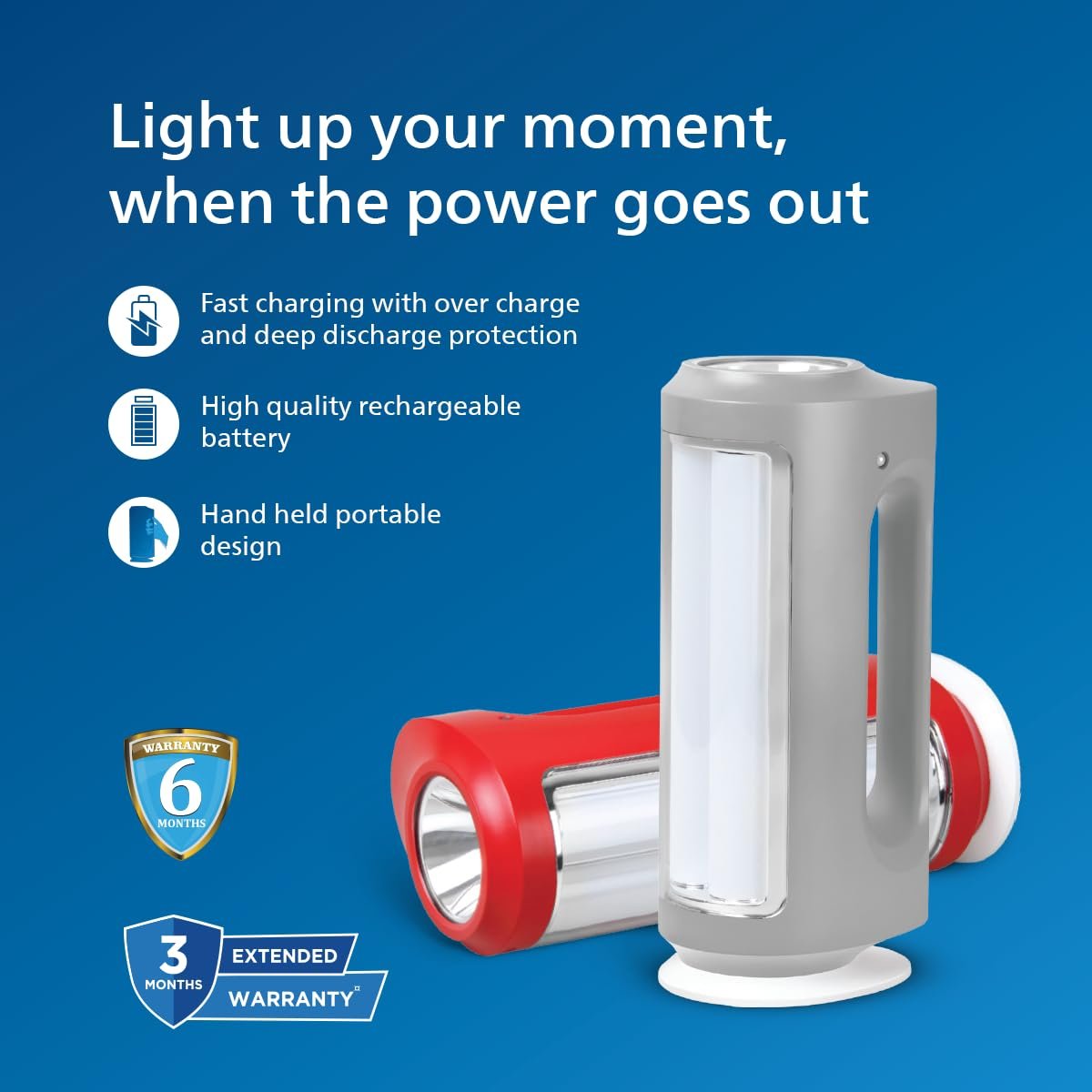 Philips Helio Multi-Functional Emergency Rechargeable LED Lantern| 3 Lighting Modes and Dimmability Brightness Control Method | 2200 mAH Battery